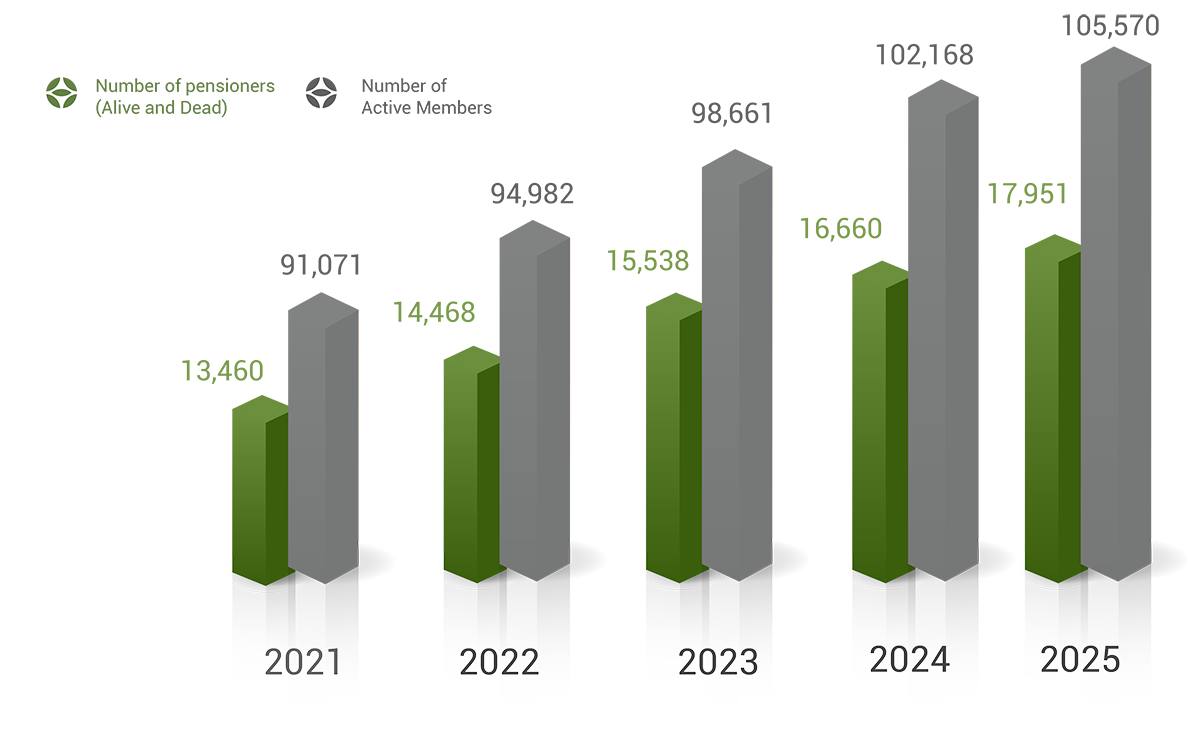 Moreover, the Fund uses the hypothesis issued by the Statistics Center Abu Dhabi, such as the average life span; fertility rate; in addition to the economic assumptions issued by the Department of Economic Development. The Fund conducted the periodic actuarial study last year. The study results showed the Fund's expectation to increase the number of citizens registered in the pension system of the Emirate of Abu Dhabi, to 105 thousand and 570 citizens, by 2025 compared to their number of 91,493 citizens by the end of the previous year.
